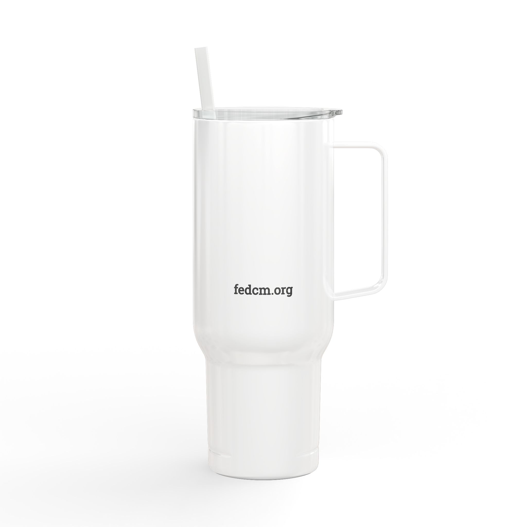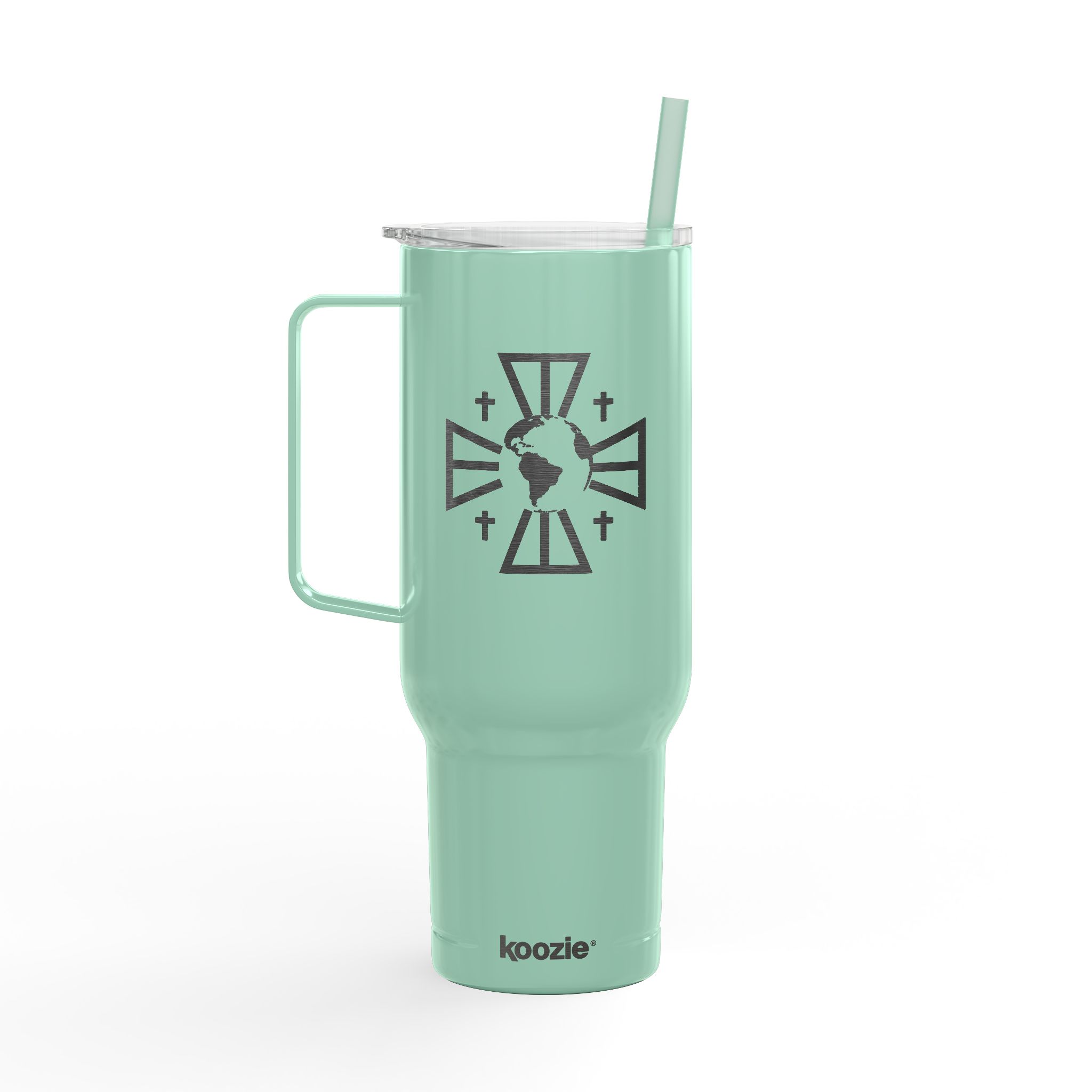 This 40oz insulated tumbler is made to travel with you — sturdy, low-maintenance, and thoughtfully built from mostly recycled materials. Its double-wall vacuum construction holds hot or cold drinks for hours, while the tapered base and large comfort handle make it easy to grip or stash in cup holders. The press-fit slider lid with matching straw reduces spills and keeps your drink accessible on the go. Engraved design adds a subtle, durable finish that won’t peel or fade. Hand wash recommended to preserve the glossy exterior and engraved artwork.